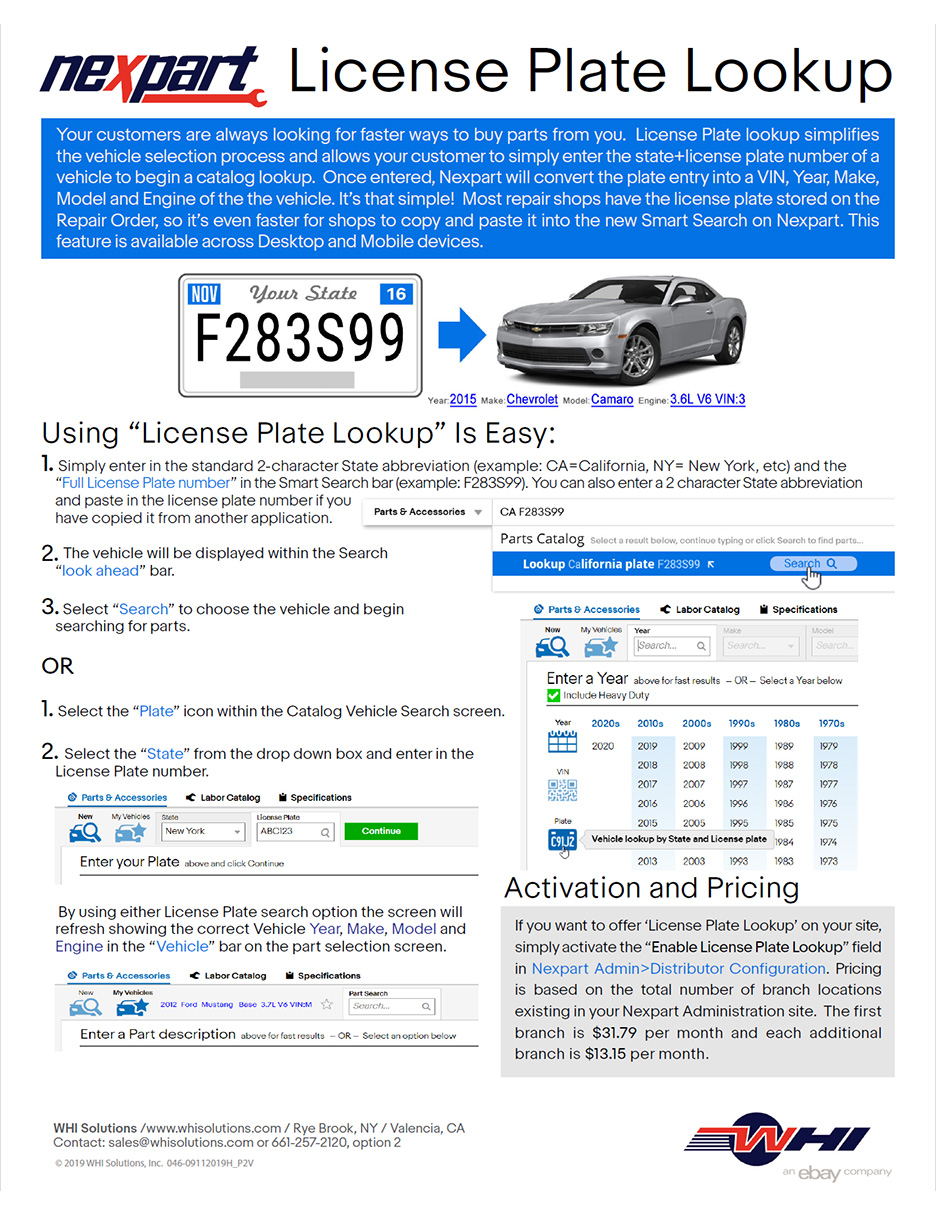 Add this feature to Nexpart to give your customers the easiest way in the industry to source parts and accessories. No longer searching to find hard to read Vin numbers, with License Plate Lookup enabled with Smart Search the experience is much simpler and more efficient for all shops.