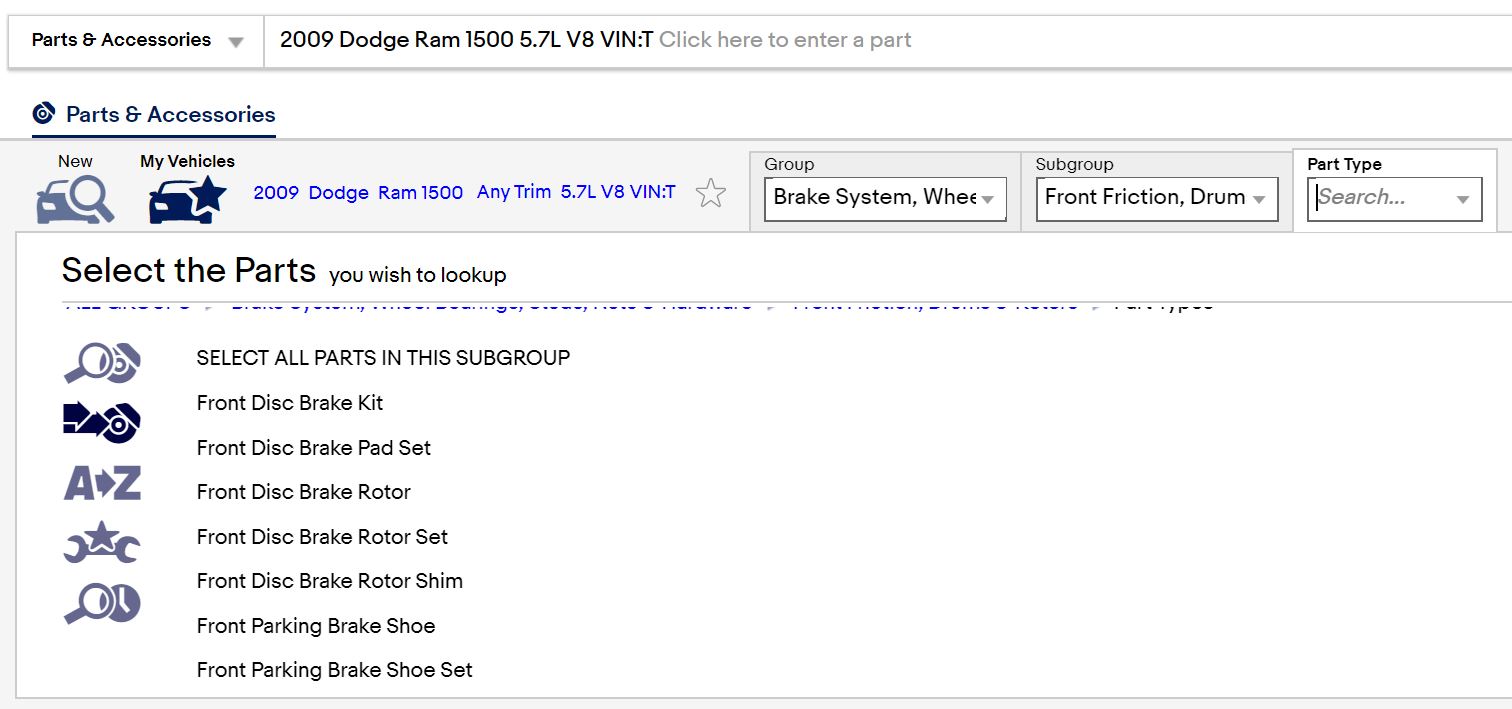 - Group/Subgroup/Part Type look up: Find a specific part within a Group/Subgroup/Part Type.